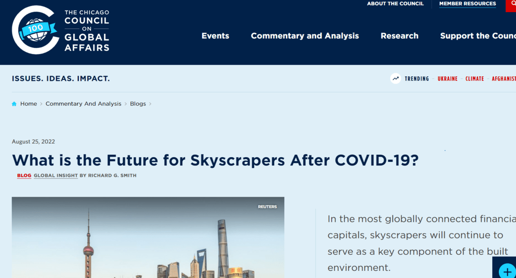 Read My Blog @ Center on Global Cities (The Chicago Council on Global Affairs): What is the Future for Skyscrapers After COVID-19? | Chicago Council on Global Affairs (thechicagocouncil.org)
