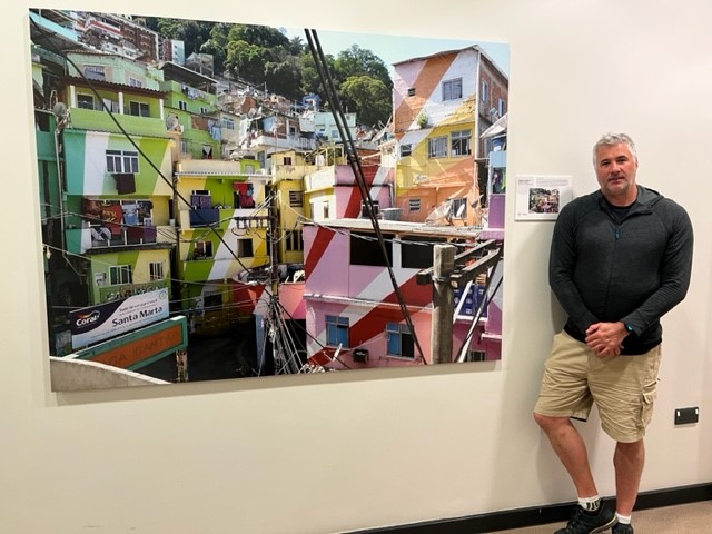 On a rare visit to Swansea University Bay Campus today I came across a display of one of my photographs: “favela painting” in Rio de Janeiro from 2015.